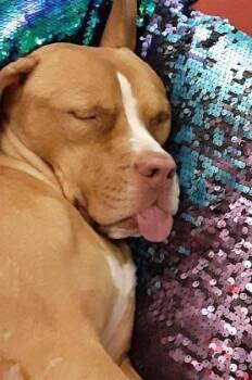 Ruca is a 7-year-old American Pit Bull Terrier mix weighing 54 pounds, and she's as sweet as she...