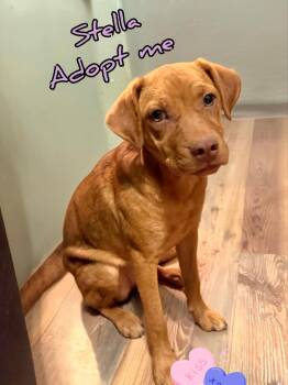 Meet Stella, the beautiful green-eyed pup whose mom is a Pit Bull, and we believe she could be mixed with...