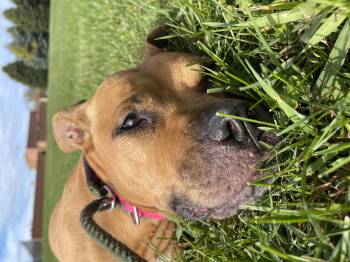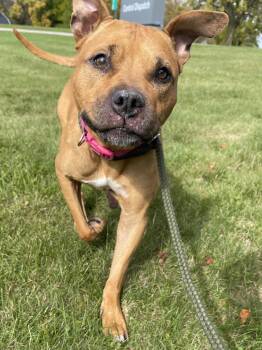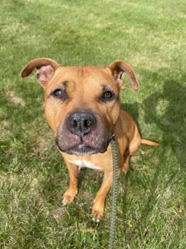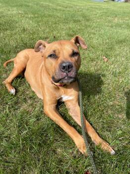 Judy came to us as a stray dog, this sweet girl is 65lbs. and was given a birthdate of 11/3/18
