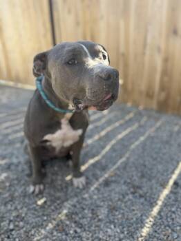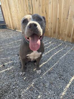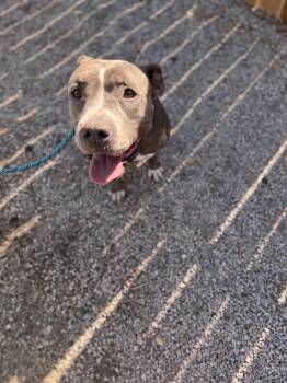 AMELIA is a darling 2 year female gray and white pit bull mix. Amelia is a super sweet and very...