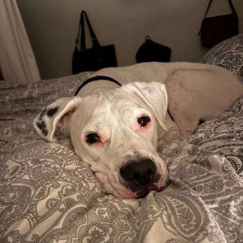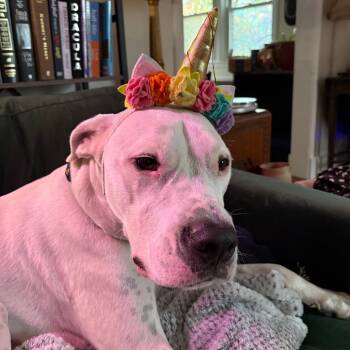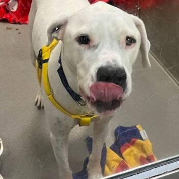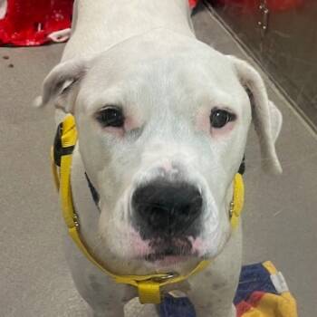 This handsome bully mix is a gentle giant with a goofy, golden heart. Dollar can be a little...