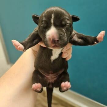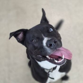 Eva is a 8 month old female black and white Pit Bull terrier mix. Eva is a sweet gal, she...
