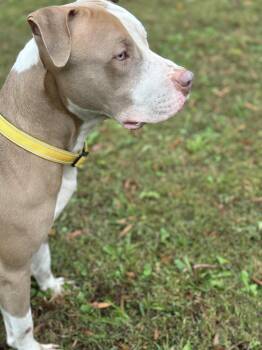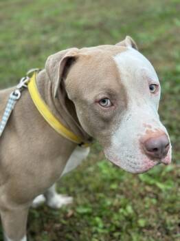 Harrier is a 4-year-old Pit mix with a beautiful brown-and-white coat and the most striking green eyes. He...