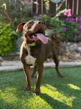 Hey there! I’m a friendly, happy, funny, good-natured Pitbull mix named Chopper, and sadly, I look like a bait dog....