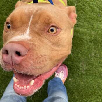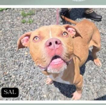 Listen up, folks — this here’s Sal, one-year-old Pitbull mix, head...