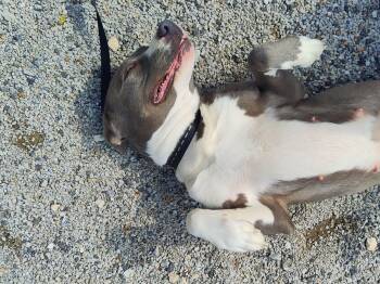 Mama is a speedy pittie who loves belly rubs when she's not working through her "zoomies." She's friendly and potty...