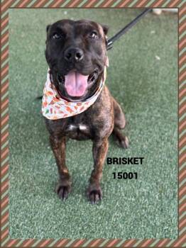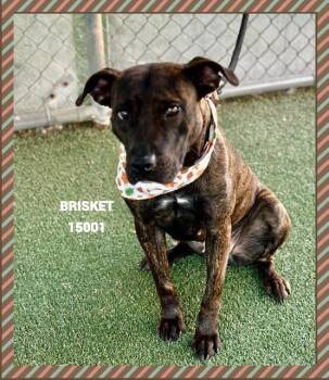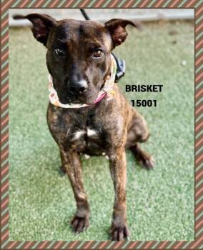 Brisket is the sweetest little girl who arrived at the shelter on 11/10/25. She has a beautiful black brindle coat...