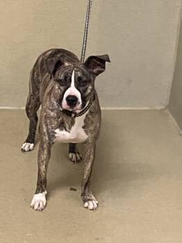 Primary Color: Brindle Secondary Color: White Weight: 53lbs Age: 3yrs 1mths 0wks Animal has been Spayed