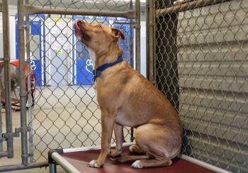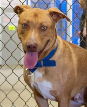 This 11-month-old golden tan pittie puppy, Winston, is as gorgeous as...