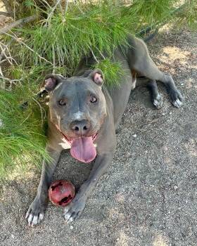 HI - I'M TOMMY, a handsome 7-1/2-year-old gray Pit Bull Terrier who has waited much too long for someone to...