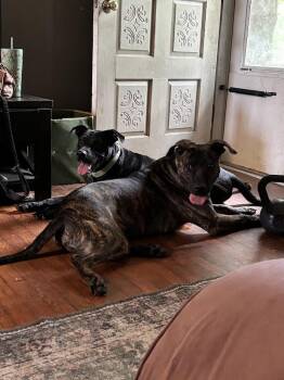 Handsome brindle boy Drax has had quite the journey already in his short life. Originally adopted from Columbia Animal Services...
