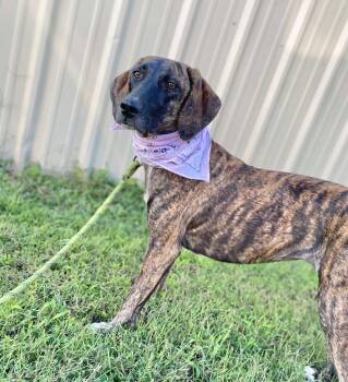 Freya is a 2.5 year old female Plott Hound mix who weighs around 42 lbs. This brindle beauty is so...