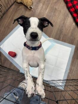 Sweet Indie, 5 months old 33 pounds, says I'm available now. Adopt me! I'm sweet and cute! I'm fond of...