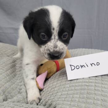 Hello, my name is Domino! I'm male, thought to be a pointer...