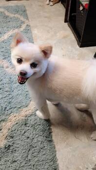 The Pomeranian is a small dog breed known for its vibrant personality and fluffy coat. Originating from Pomerania in Central Europe, these dogs are intelligent, alert, and exceptionally friendly, making them excellent companions for both individuals and families. Pomeranians require regular grooming to maintain their luxurious double coat, which can come in various colors. Despite their small size, they are lively and confident, often displaying a curious nature and playful demeanor that endears them to their owners.
