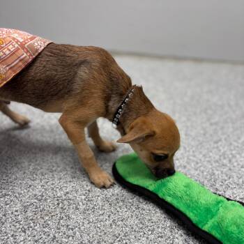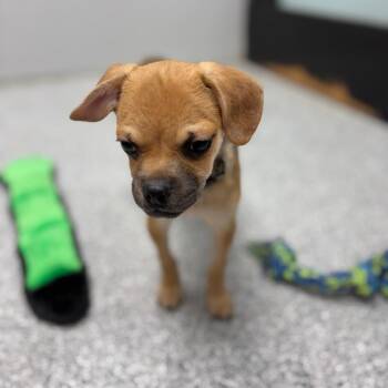 This 3.5-month-old Pug/Chihuahua mix is the life of the party and the heart of the playgroup! With his darker coat...