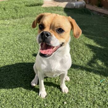 The puggle is a popular designer dog breed that is a cross between a pug and a beagle, resulting in a friendly and affectionate companion known for its playful nature and adorable appearance. Puggles typically have a short coat, expressive eyes, and a sturdy build. They are known for being sociable, energetic, and good with children, making them great family pets. Puggles require regular exercise and mental stimulation to keep them happy and healthy.