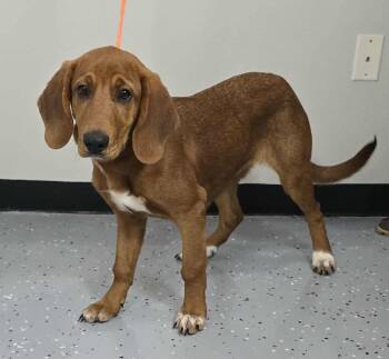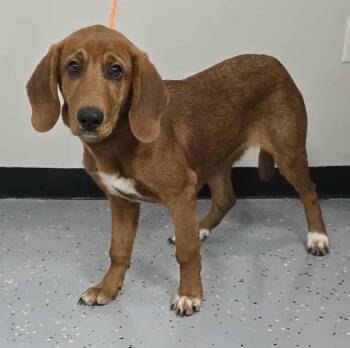 Meet Bratson: a 4 month old redbone mix weighing 29 pounds as of 10/31/25!