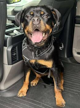 The Rottweiler is a powerful and loyal breed known for its robust build and confident demeanor. Originating from Germany, these dogs are renowned for their intelligence, making them excellent guard and working dogs. Rottweilers are known for their distinctive black and tan markings, along with their calm and confident temperament. With proper training and socialization, they can be affectionate companions and effective protectors, embodying the qualities of courage, strength, and loyalty.