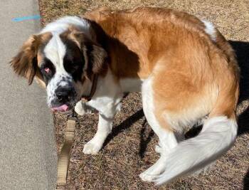 Beasley the 2 year old female Saint Bernard is searching for a new forever home where she can play with...