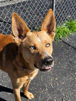 Meet Vinnie! He's a handsome large male adult male mix (Shepherd/Husky?). He's a strong boy and needs an experienced human....