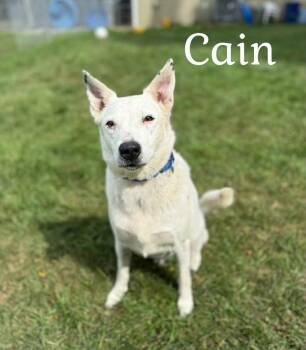 Cain lost his family when their house burned down. He is 6 yrs old. He has lived with other dogs...