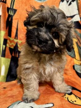The Shih Poo is a charming and affectionate designer dog breed that is a cross between a Shih Tzu and a Poodle. Known for their friendly and playful nature, Shih Poos make excellent family pets and companion animals. They typically have a hypoallergenic coat and can come in a variety of colors and sizes, making them a popular choice for individuals looking for a loving and low-shedding pet. Shih Poos require regular grooming to maintain their coat and overall health.