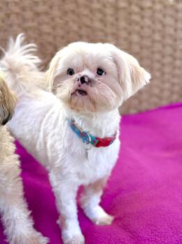The Shih Tzu is a small, affectionate dog breed known for its distinctive appearance, with a luxurious double coat, a short muzzle, and large round eyes. Originally bred as companion dogs for Chinese royalty, Shih Tzus are friendly, outgoing, and loving pets. They are known for their playful and charming personality, making them great family pets and suitable for apartment living. With their low shedding coat and adorable face, Shih Tzus are popular among dog lovers worldwide.