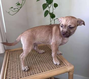 Everyone welcome Briar Rose!! Briar Rose is a female, 16-week-old (DOB 6/8/25) Terrier/Chihuahua/Yorkie/Pug (?) mix who is one of Momma...