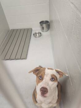 Very sweet large mixed breed male. 50 pounds, estimated 1 year old. Bluey came to us when he and a...