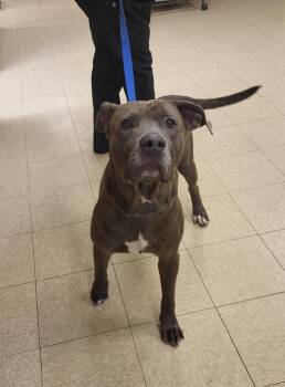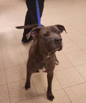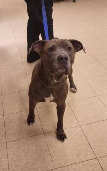 Andre is a 4-5 yr old, 80 lbs, terrier mix. He is super sweet, good on a leash, takes treats...