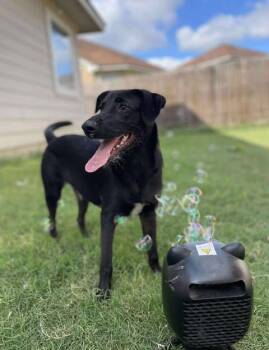This sweet 8-month-old, 30-pound terrier/lab mix is the definition of resilience and charm.