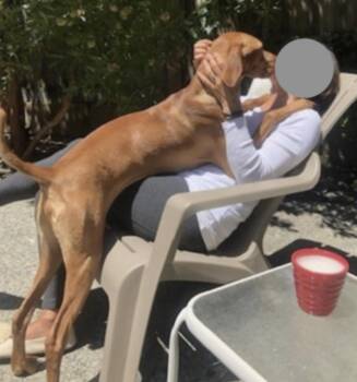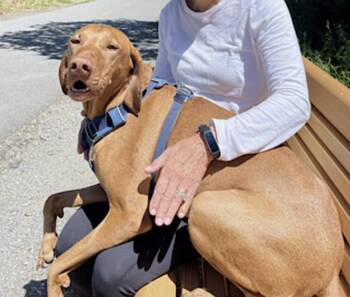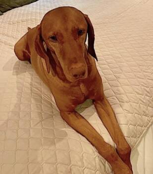 A dignified seven-and-a-half-year-old Vizsla from Corte Madera, CA, whose golden rust coat radiates warmth and beauty, just like...