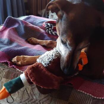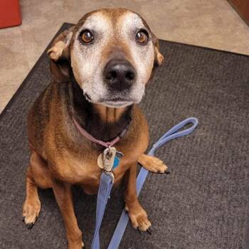 Meet Rosie. Rosie is a 55 lb, 9-10 year old Vizsla mix! Rosie would love to find a loving home...