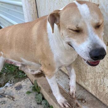 Meet George, the happy-go-lucky yellow lab/hound mix with a heart of gold and a tail that never stops wagging!