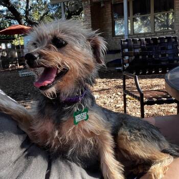 This adorable 4-year-old, 10-pound Yorkie mix is as sweet as she looks! Riz can be a little shy...