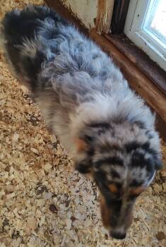 The Australian Shepherd is a highly intelligent and energetic herding dog known for its loyalty and work ethic. Originating in the United States, despite its name, this breed is prized for its agility, trainability, and versatility in various dog sports and activities. Australian Shepherds have a distinctive medium length coat that comes in different colors, often with unique merle patterns. With proper training, socialization, and exercise, these dogs make excellent companions for active families and individuals seeking a devoted and playful four legged friend.
