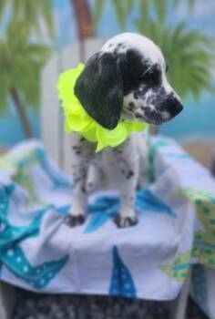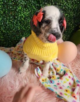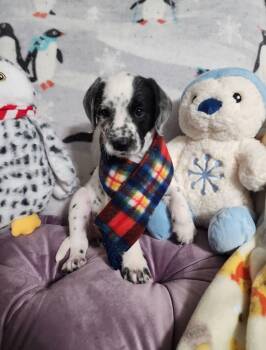 Penny is the sweetest little girl. She's full of love and gives the best snuggles and puppy kisses! She is the one who steals everyone's heart. She has been vet checked and had 2 vaccinations done by our vet. She us second smallest in her litter. They were born on new years day 2026. Her mom is a dalmation and dad is a standard poodle. She us ready to be spoiled and give lots of love to her new family!