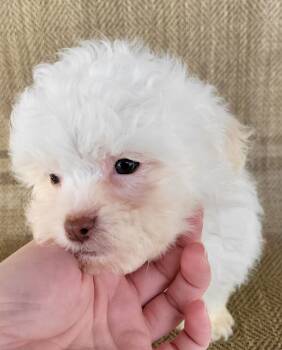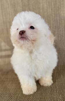 Meet Echo, a rare and beautiful cream (non-standard) puppy with a soft, eye-catching coat and a sweet, loving personality. Echo is playful yet gentle, adores cuddles, and enjoys being around people. With a calm, affectionate nature and a curious mind, Echo is already showing great progress with early training and a strong desire to please.