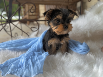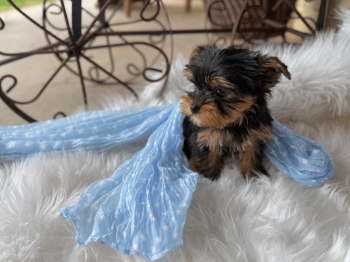 The Yorkshire Terrier, also known as Yorkie, is a small and glamorous toy dog breed known for its long, flowing coat and spirited personality. Originating from England, these affectionate and intelligent dogs make wonderful companions for individuals and families alike. With a weight of around 7 pounds, Yorkies are portable and adaptable, thriving in both city apartments and rural settings. Despite their small size, they possess a bold and confident nature, always ready for fun and adventure.