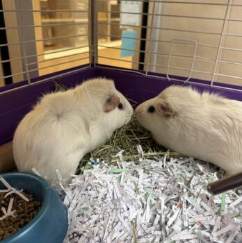Karen Plankton and Mrs. Puff are a bonded pair of 1-year-old white Abyssinian guinea pigs who are inseparable besties-and must...