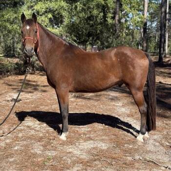 The Quarter Horse is a versatile and popular breed known for its strength, agility, and speed, making it ideal for a variety of disciplines such as ranch work, rodeo events, and racing. With a muscular build, compact frame, and powerful hindquarters, the Quarter Horse excels in short-distance sprints and quick maneuvers. Known for their gentle demeanor and intelligence, they are valued for their versatility and adaptability, making them a top choice for riders of all skill levels and disciplines.