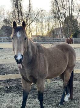 The Quarter Horse is a versatile and popular breed known for its strength, agility, and speed, making it ideal for a variety of disciplines such as ranch work, rodeo events, and racing. With a muscular build, compact frame, and powerful hindquarters, the Quarter Horse excels in short-distance sprints and quick maneuvers. Known for their gentle demeanor and intelligence, they are valued for their versatility and adaptability, making them a top choice for riders of all skill levels and disciplines.