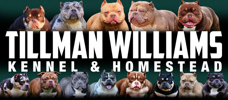 Tillman Williams Kennel (formerly known as Tillman Taylor Kennels) has been involved with bully breeds since 2014. All dogs that are included in our breeding program must meet certain structural, temperamental, and health requirements. We are a registered LLC in the state of South Carolina, owned by Holly Tillman/Antwain Williams.