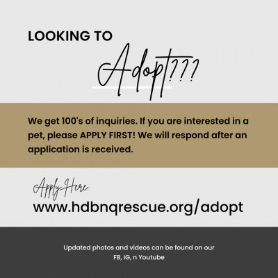 Please see our website for more info on our adoption process and adoption events: www.hdbnqrescue.org/adopt