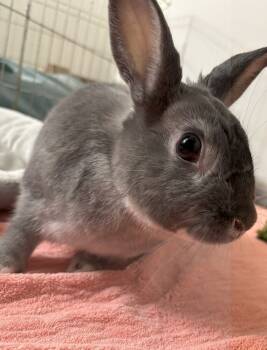 Floppy is a lovely gray bunny with big brown eyes and a gently regal nature. She would thrive in a...