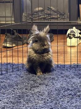 Koekje our little Cookie Monster is a 4-year-old male lionhead rabbit with a striking black coat and silver mane. This...